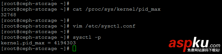 要配置 PID 數目的值,我們會使用下面的命令檢查默認的內核值。默認情況下,是一個小的最大線程數 32768。