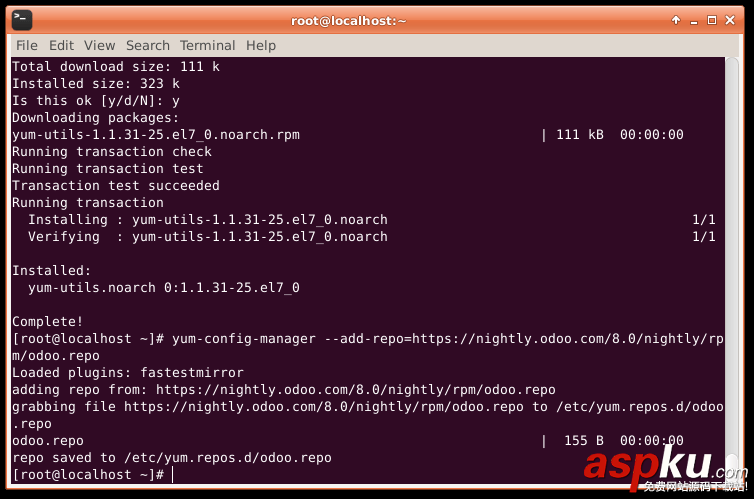 現(xiàn)在,安裝EPEL后,我們現(xiàn)在使用yum-config-manager添加Odoo(OpenERP)的倉(cāng)庫(kù)。