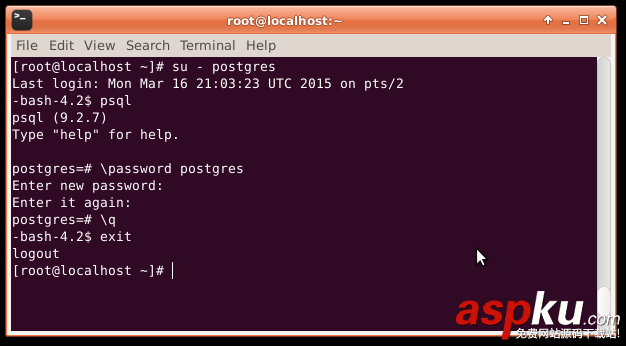 因?yàn)槲覀冞€沒(méi)有為用戶“postgresql”設(shè)置密碼,我們現(xiàn)在設(shè)置。