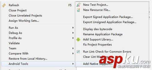 新建一個空白的Android工程,在根目錄上點擊右鍵Adnroid Tools - Add Native Support...