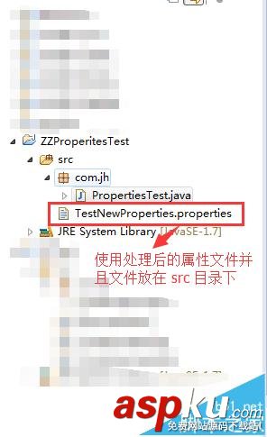我們新建一個測試工程,并新建一個類 PropertiesTest, 我們還需要將這個處理后的 Properties 文件拷貝到工程 src 目錄下,這樣我們的類 PropertiesTest 就能夠比較容易的訪問到這個文件。截圖顯示整個測試工程的結構。