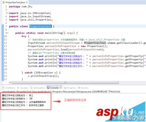 程序可以根據指定的key正確輸出我們在 Properties 文件中定義的信息!
