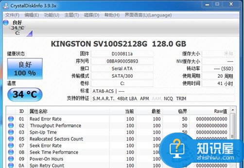 3、安裝一塊金士頓SSD,型號SSDNow V100 128G,標稱讀寫性能為250/220 MB/S,如圖3所示: