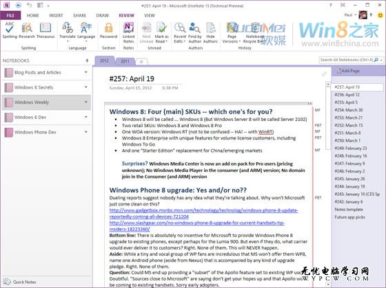 Winsupersite.com再次放出Office 15的界面截圖,Metro風格主打,并展示Office 15的新主題以及全屏模式、閱讀模式的界面,界面清新簡潔。針對平板電腦等觸摸設備,還將提供觸控模式。