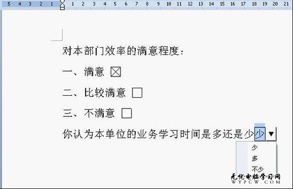 再次單擊“增加”按鈕,繼續添加新的選擇內容,直到將可選擇內容添加完畢,單擊“確定”關閉對話框,最后單擊“保護窗體域”即可。這樣,當我們在用鼠標點擊窗體域時,就會彈出可選擇的選項(如圖4),單擊相應選項即可完成選擇。