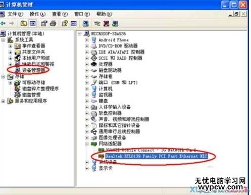 4、在“計算機管理”窗口中點擊“設備管理器”,然后找到存在不兼容硬件設備或驅動未正確安裝的設備。對于驅動未正確安裝的設備,建議重啟安裝其對應官方驅動。對于不兼容的硬件設備,就在對應設備上右擊,選擇“禁用”命令將其禁用。
