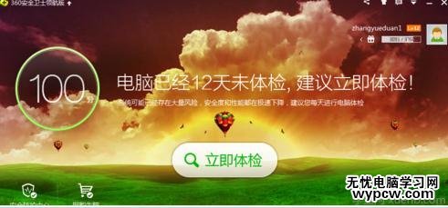 電腦安裝并打開360安全衛士,全盤掃描有無病毒,若有病毒,立即查殺。