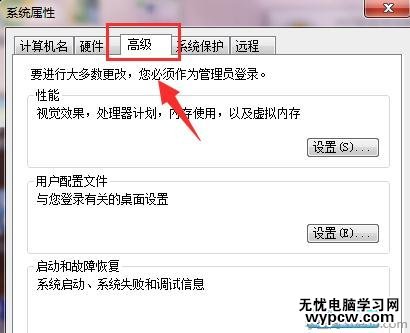 打開高級系統屬性,打開系統屬性選項卡中的高級項目。