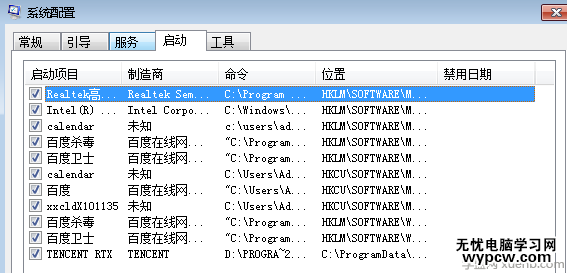 4.在系統配置窗口中,咱們將界面切換到啟動這一欄,然后將不需要的啟動項目全部的取消勾選,完成設置后點擊下方的確定按鈕保存,之后重啟電腦即可。