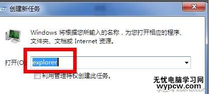 在創建新任務的輸入框中輸入“explorer”,然后點擊確定。