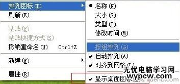 1、首先右擊桌面選排列圖標/勾選顯示桌面圖標。