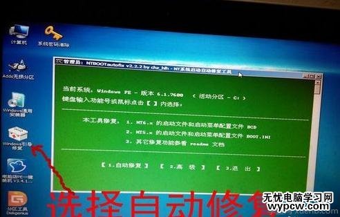 進入pe系統后,在桌面會有修復引導區,選擇自動修復,就成功了。然后再把BIOS改回原來的設置,重啟電腦。