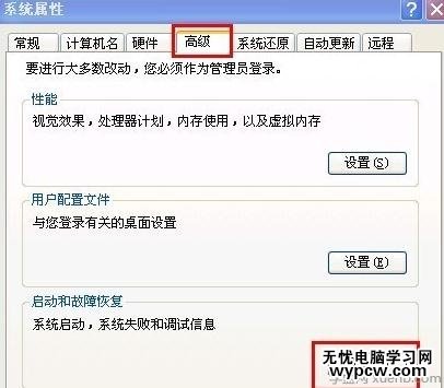 打開“系統屬性”窗口,切換到“高級”選項卡,單擊啟動和故障恢復的“設置”按鈕