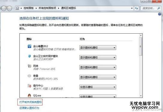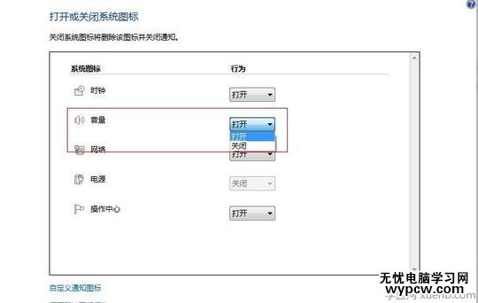 看到音量的圖標了嗎?看到你就成功了,將后面的行為選擇為打開,就可以看到右下角的音量圖標已經出來了。