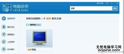 通過騰訊電腦管家的電腦門診的搜素輸入界的輸入欄,輸入藍屏字樣,點擊回車即可進入到相關的頁面中。