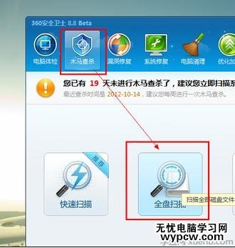 比如沖擊波和震蕩波等病毒有時(shí)會(huì)導(dǎo)致Windows藍(lán)屏死機(jī),因此查殺病毒必不可少。同時(shí)一些木馬間諜軟件也會(huì)引發(fā)藍(lán)屏,所以,最好再用相關(guān)工具進(jìn)行掃描檢查。打開殺軟,進(jìn)行一次檢查,排除所有危險(xiǎn)項(xiàng)。