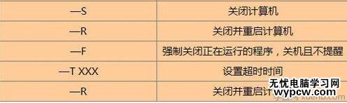 所示為shutdown常用的一些參數。