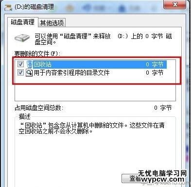 3)然后就會彈窗磁盤清理的選項框,進行選項選擇,然后點擊確定,就會開始進行磁盤清理。