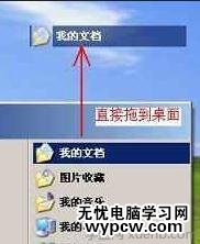 還是在“開始”菜單的右邊找到“我的文檔”圖標(biāo)——>用鼠標(biāo)左鍵點(diǎn)住“我的文檔”,將“我的文檔”圖標(biāo)直接拖動到桌面就可以了;