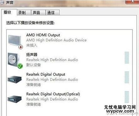 進入到電腦中的聲音界面中后,我們可以看到相關的揚聲器功能,查看下默認設備是否是良好的即可。