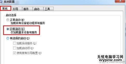 當然,我們也可以通過禁用某些開機項來嘗試修復系統。打開“運行”對話框,輸入命令“msconfig”進入“系統配置實用程序”界面,勾選“常規”選項卡下的“診斷啟動”選項。