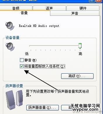 如果右下角沒有小喇叭圖標,可以點擊電腦開始——控制面板——聲音,語言和音頻設備——聲音和音頻設備——勾選將音量圖標放入任務欄