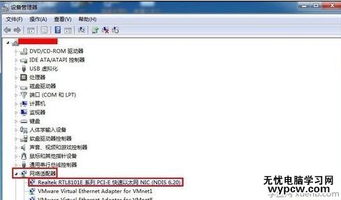 彈出的設(shè)備管理器窗口下展開網(wǎng)絡(luò)適配器,雙擊打開網(wǎng)卡