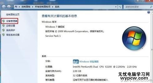 在控制面板主頁欄中單擊“設(shè)備管理器”命令