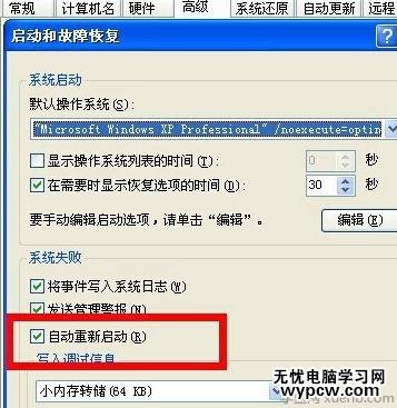 最后,我們在打來的窗口中將系統失敗下方的“自動重新啟動”前面方框中的√取消。