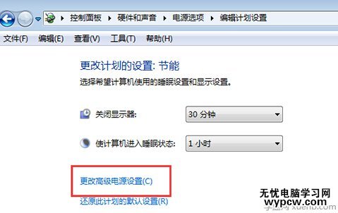3.在打開的窗口中,咱們點擊“更改高級電源設置”,然后在彈出來的窗口中,咱們在列表中找到“睡眠”,將“允許使用喚醒定時器”設置為“禁用”,然后確定保存。