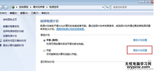 2.之后,咱們會進入到電源選項的設置窗口,如下圖中所示,咱們點擊其中的“更改電源計劃設置”。