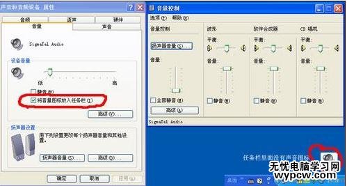 第一種:“控制面板”——“聲音和音頻設備”——“將音量圖標放入任務欄”曾經手動關掉了。只要打開就行了。