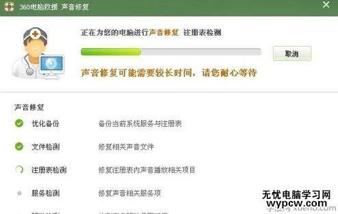 點擊進入以后,發現電腦救援提供了很多沒有聲音的具體情況,選擇對應的癥狀,點擊進行處理。我的是電腦沒有聲音,包括開關機,所以選擇了第一項進行立即修復~~~
