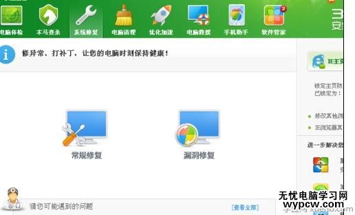 打開360安全衛士,選擇電腦救援,在搜索攔輸入電腦藍屏,因為電腦有些基本問題無論是xp 系統還是win7系統,360安全衛士里面都有一些急救的方法,因為電腦藍屏很多都是顯卡問題,只要修復就可以了,點擊立刻修復,修復完成后重啟電腦。