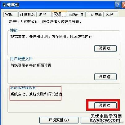 點(diǎn)擊設(shè)置后,進(jìn)入到“啟動(dòng)和故障恢復(fù)”窗口。