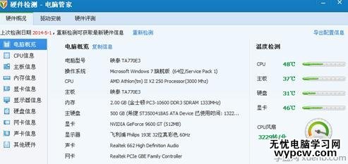 在應(yīng)用工具里面有一個(gè)硬件檢測,↑點(diǎn)開它,就會(huì)出現(xiàn)一個(gè)這樣的畫面: