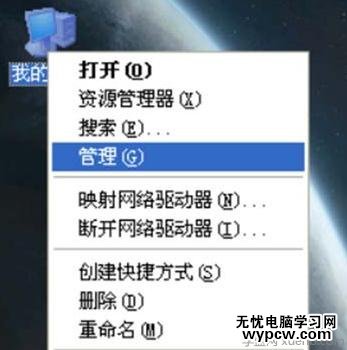 右擊“我的電腦”,在彈出的菜單中選擇“管理”項(xiàng)。