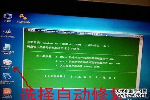 進入pe系統后,在桌面會有修復引導區,選擇自動修復,就成功了。然后再把BIOS改回原來的設置,重啟電腦。