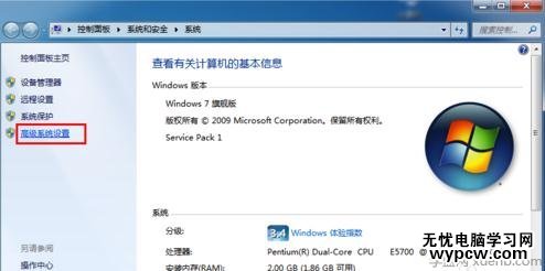 在打開的系統屬性窗口中選擇“高級系統設置”項進入。