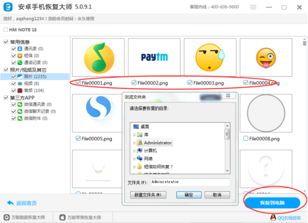 預覽掃描到的文件,并選擇要恢復的文件,點擊"恢復到電腦"按鈕。