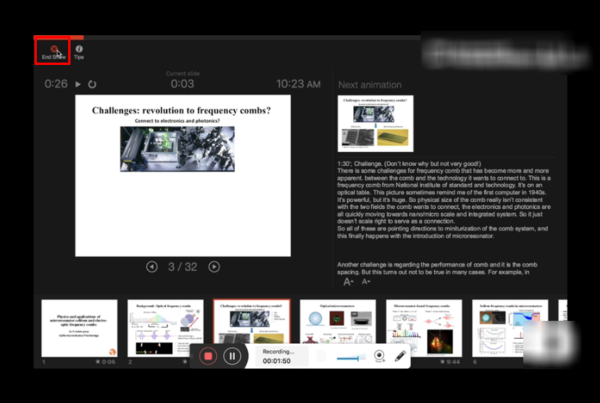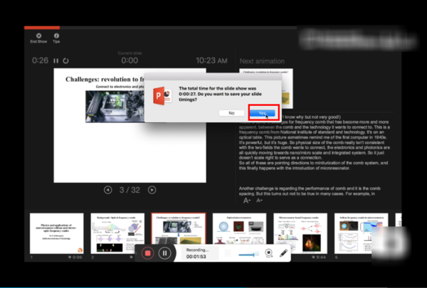 第六步,當課程全部講完以后,我們點擊界面上的【End Show】,此時會彈出保存的提醒,我們一定要選擇【Yes】。