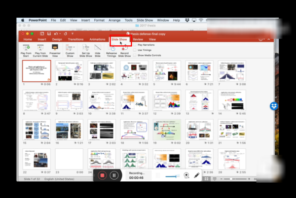 而學生在觀看PPT網絡課程時,需要進行注意的是,打開PPT文檔后,在PPT播放時,也要在【Slide Show】當中,將【Play Narrations】和【Use Timings】這兩個選項勾選上。這樣PPT的聲音才能夠播放出來。