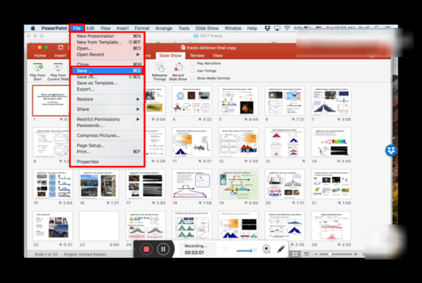 第七步,回到PPT的界面中,我們選擇【File】――【Save】,然后就可以將PPT關掉了。