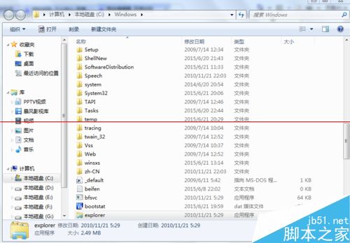 3、鼠標移動到映像名稱“explorer"這欄,然后點擊鼠標右鍵,點擊打開文件位置,就會顯示這個進程的位置,你會發(fā)現(xiàn)它在C盤windows文件夾里,這樣你就發(fā)現(xiàn)了它是windows進程,是不能關閉的。