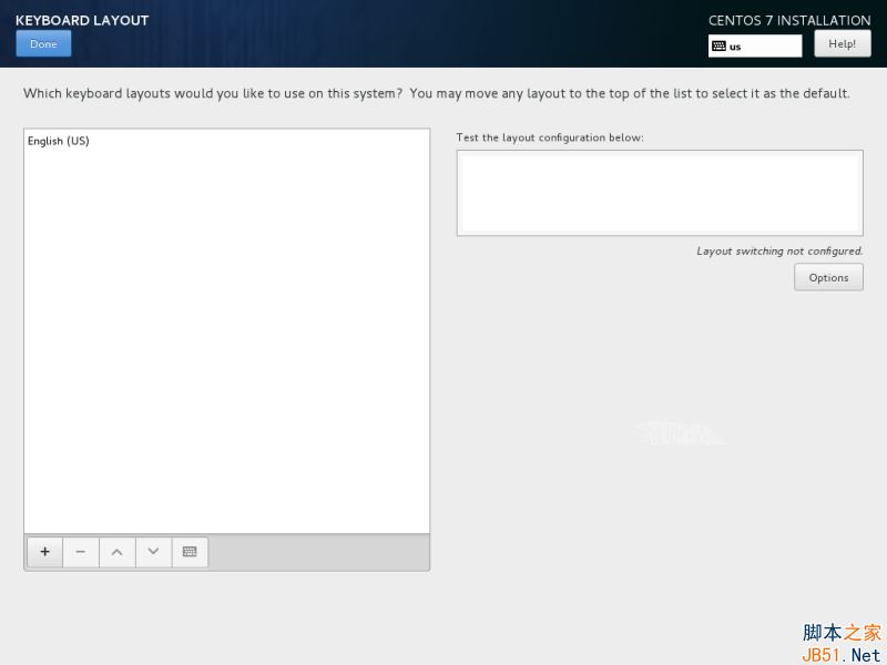 4、 點(diǎn)擊“鍵盤Keyboard”菜單進(jìn)入鍵盤布局頁面。選擇或者添加一個(gè)鍵盤布局并點(diǎn)擊“完成Done”按鈕繼續(xù)。