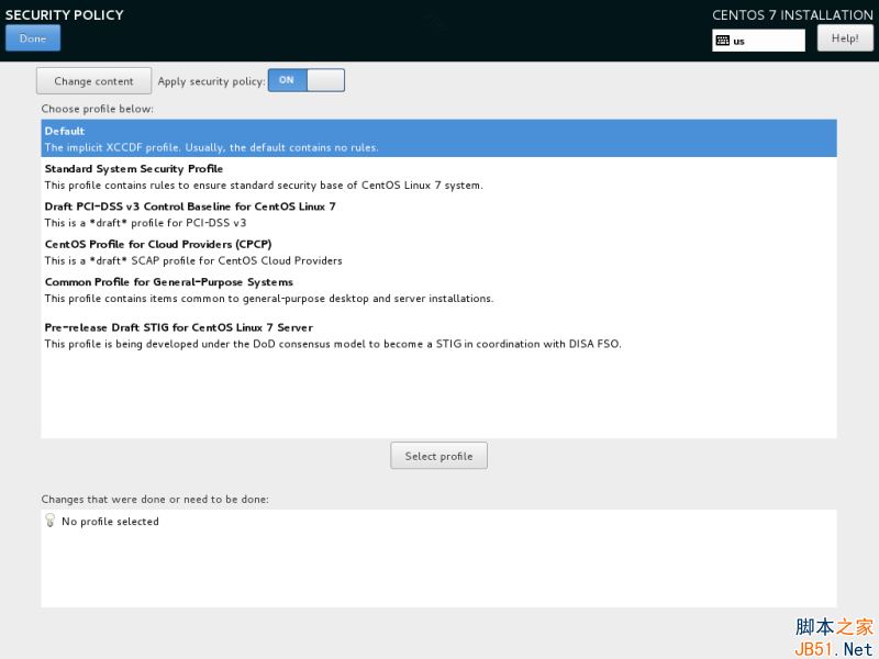 點(diǎn)擊選擇配置按鈕來選擇你想要的安全配置并點(diǎn)擊“應(yīng)用安全策略Apply security policy”按鈕到 On。點(diǎn)擊“完成Done”按鈕后繼續(xù)安裝流程。