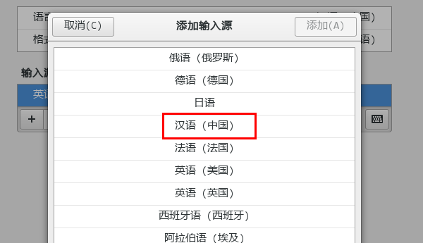 4、在輸入源中,點(diǎn)擊“漢語(yǔ)(中國(guó))”。