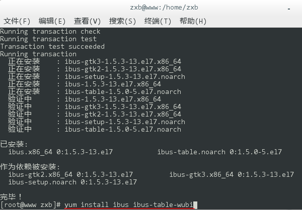 5、移除完畢后,再鍵入 yum install ibus ibus-table,回車后重新安裝輸入法框架。同樣,在執(zhí)行過(guò)程中會(huì)詢問(wèn)是否確認(rèn)安裝,鍵入 y 回車?yán)^續(xù)。