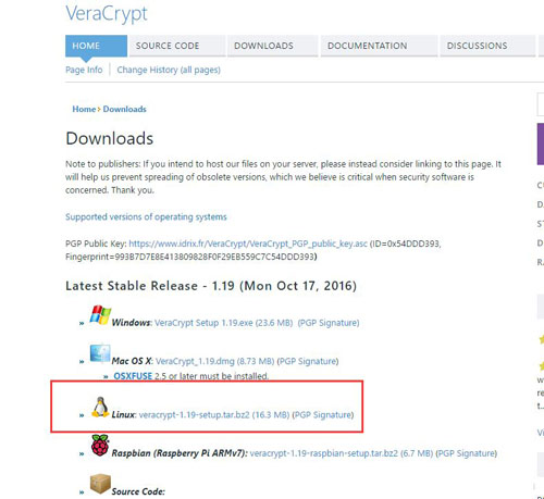 VeraCrypt最新版本為1.19,單擊此處進入項目主頁