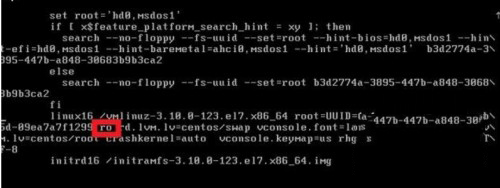 (3)把ro改成 rw init=/sysroot/bin/sh ,按ctrl+x啟動